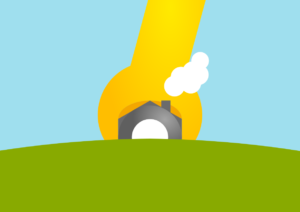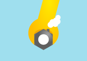A draft for a post card advertising engineering solutions: The “grass” can be flipped away to open the card, simultaniously revealing the rest of the house which doubles a nut in a wrench.